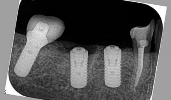 今週最後の治療はインプラント埋入オペを行います。 左下第一小臼歯部分にインプラントを埋入します。大臼歯部分には、すでに2本のインプラントを埋入しています。 終了時のレントゲン写真です。(ストローマン ボーンレベルインプラント ...