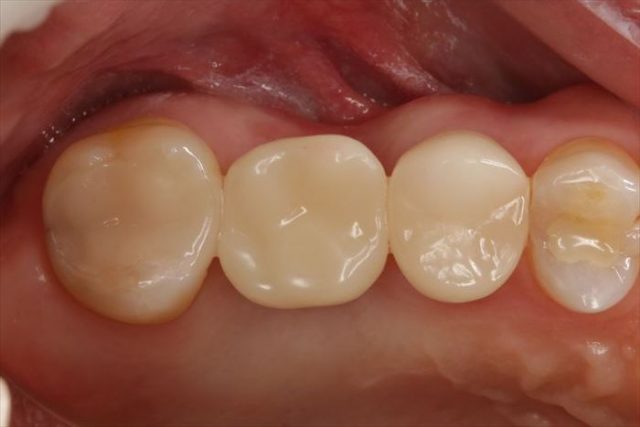 仮歯で咬むことが大丈夫でしたら、仮歯の形態を参考にセラミックの歯を本日同様セレックで即日製作・接着してインプラント治療の完成です。