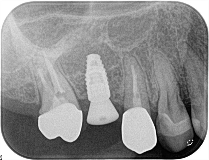 インプラント埋入オペ終了時のデンタルレントゲン写真です。