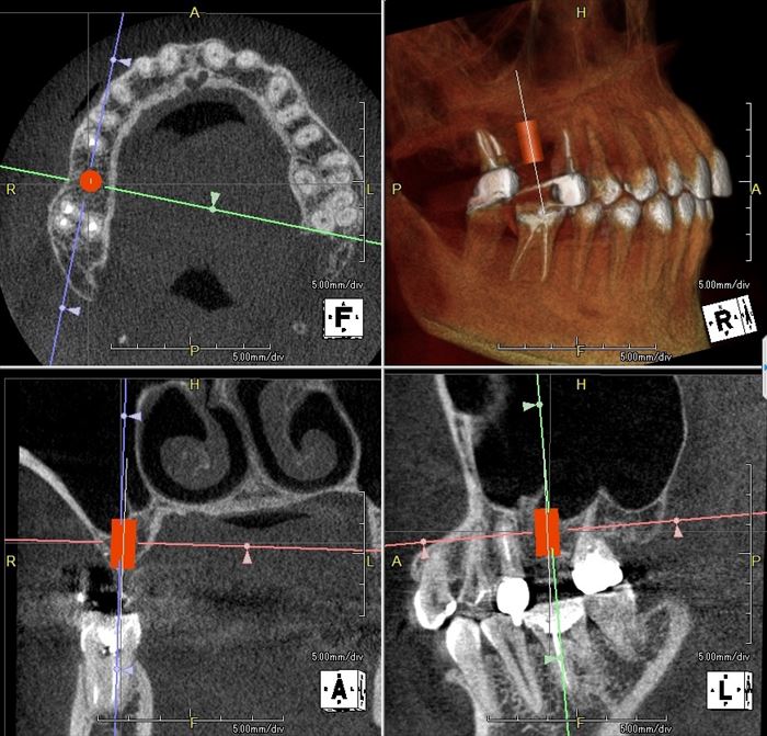 デンタルレントゲン写真において想定通りの角度であることから、ドリリングのステップを進めます。