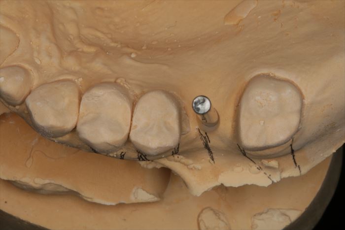CTデータと重ね合わせ、模型上でインプラント埋入位置・角度を決定し、