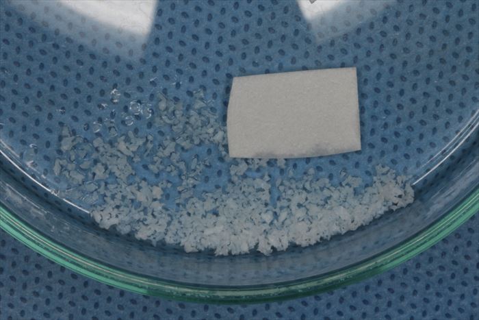 骨移植材とコラーゲンメンブレン(膜)を準備します。