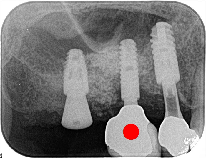丸印が本日撤去するインプラントです。