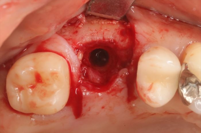 インプラントを撤去したあとは金属切削片がわずかに残っていますので掻爬(そうは)して取り除きます。