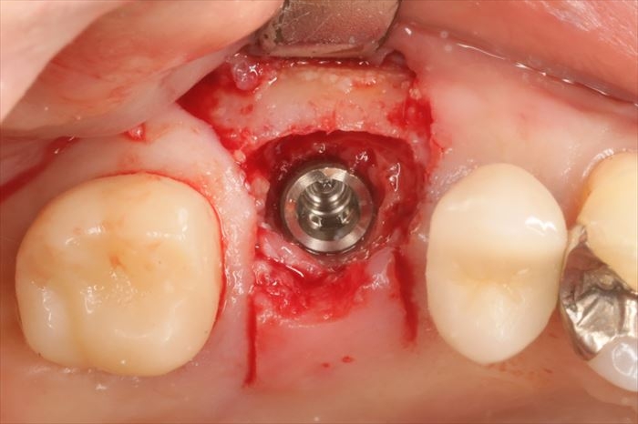 粘膜を剥離して骨の状態を確認します。